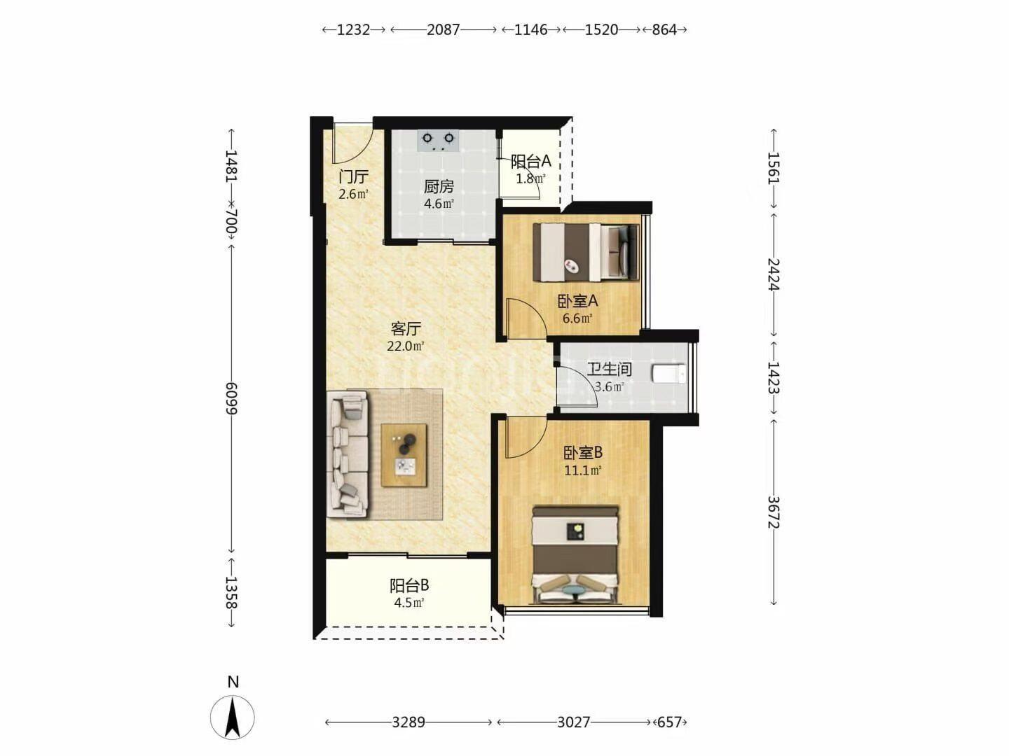盛平豪华大两房一厅3000